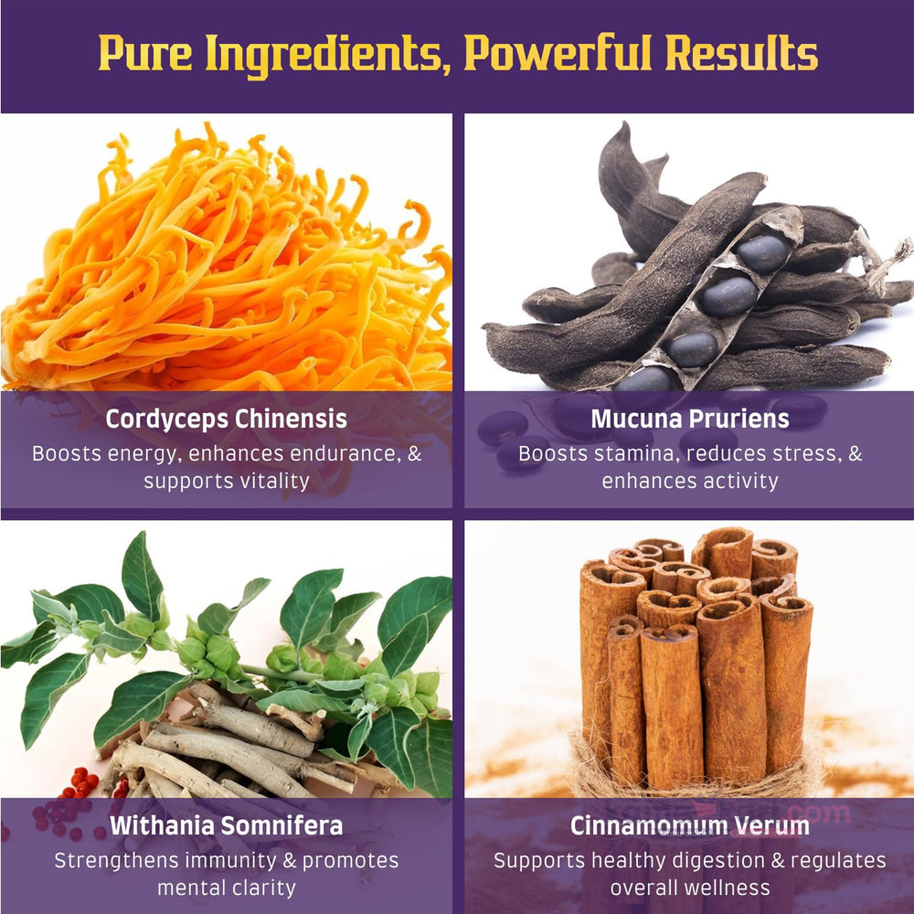 ▪ Enhances Immunity — Enriched with Mucuna Prurien, Withania Somnifera, and Chlorophytum Borivilianum to boost white blood cells and strengthen antibody response.