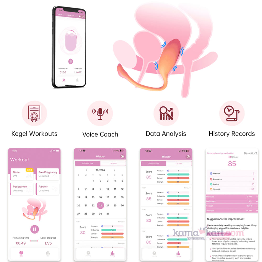 ▪ Kegel Training with Biofeedback: Strengthen your pelvic floor with guided exercises and real-time insights for enhanced intimate health.